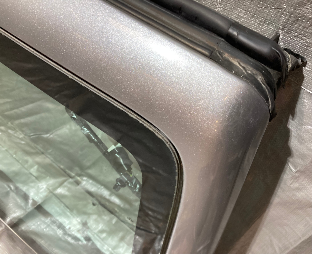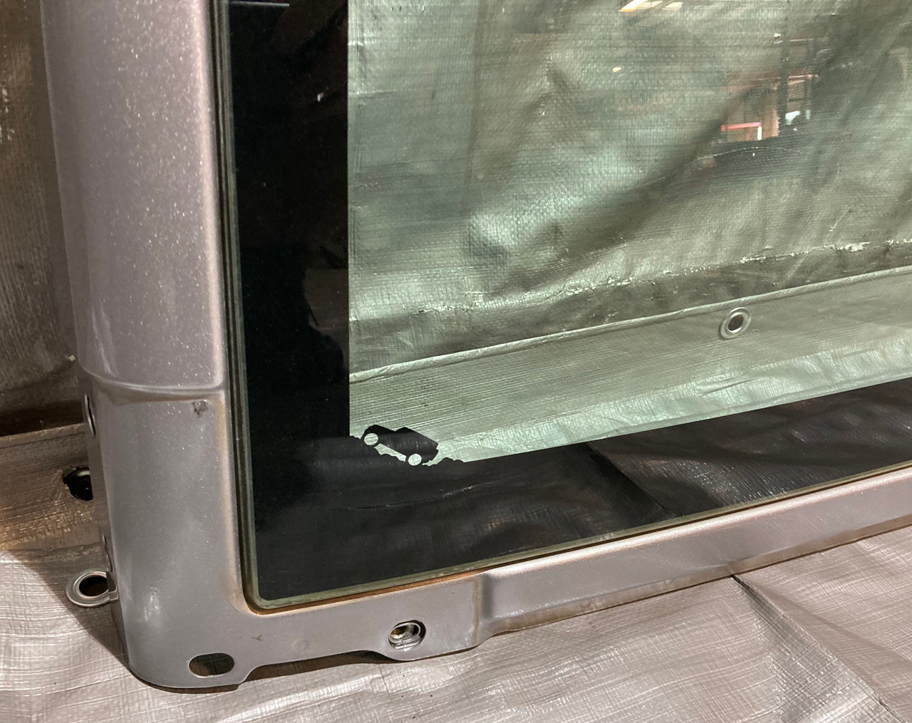 Includes the complete front windshield assembly with original glass panel. In good physical condition with no damage or dents. The surround frame is free of any bends or damage. Glass has no chips or cracks. You will need to reuse some existing hardware for installation.