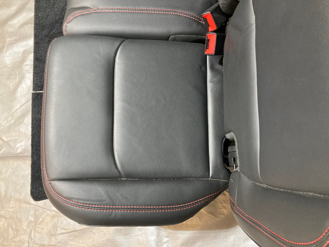Had leather front seats, needed matching rear. This set completes interior. Red stitching matches. Installation simple. Interior now uniform. Complete set essential.