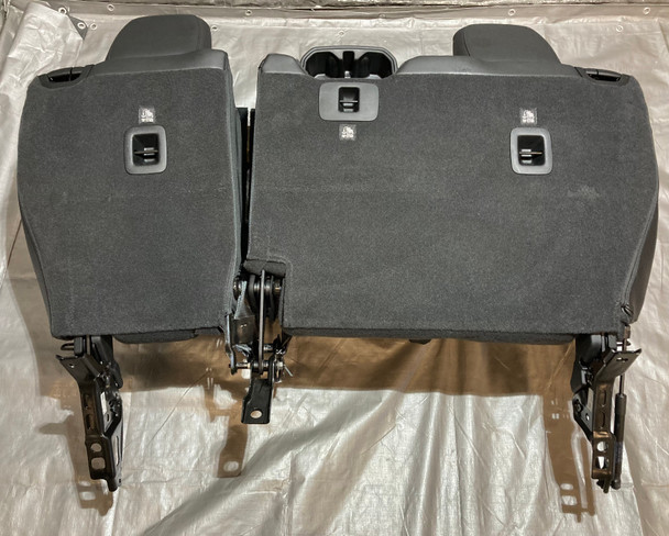 In good physical condition, seat brackets have not been hit or bent in any way. The fabric is free of any rips or tears. The stitching is fully intact with no fraying. Includes everything as shown in the photos. There ins some indentions in the foam from the seatbelt when folded. You may need to reuse some of your existing hardware for installation.