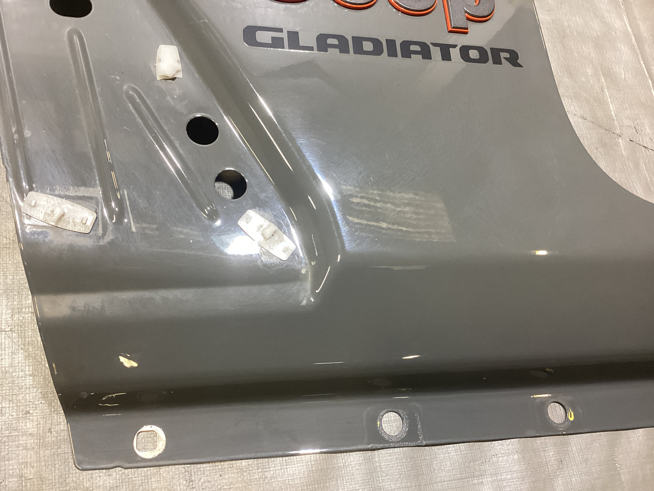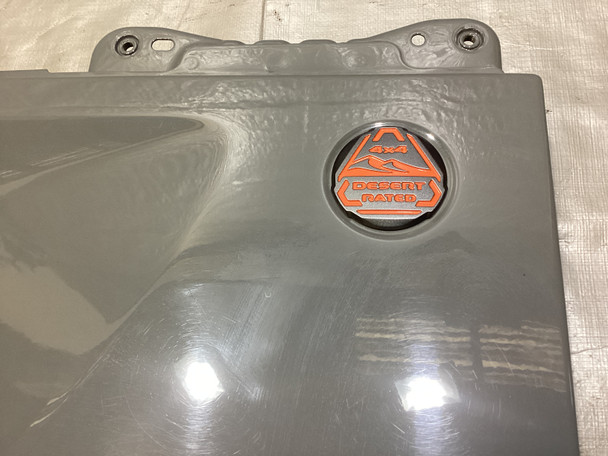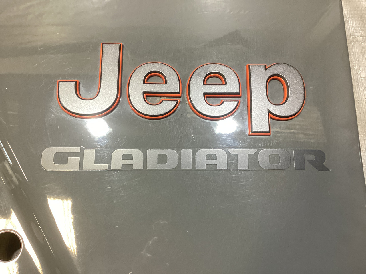 This panel was removed from a 2022 Gladiator Mojave, so this has the orange trimmed badge and Gladiator decal, as shown.