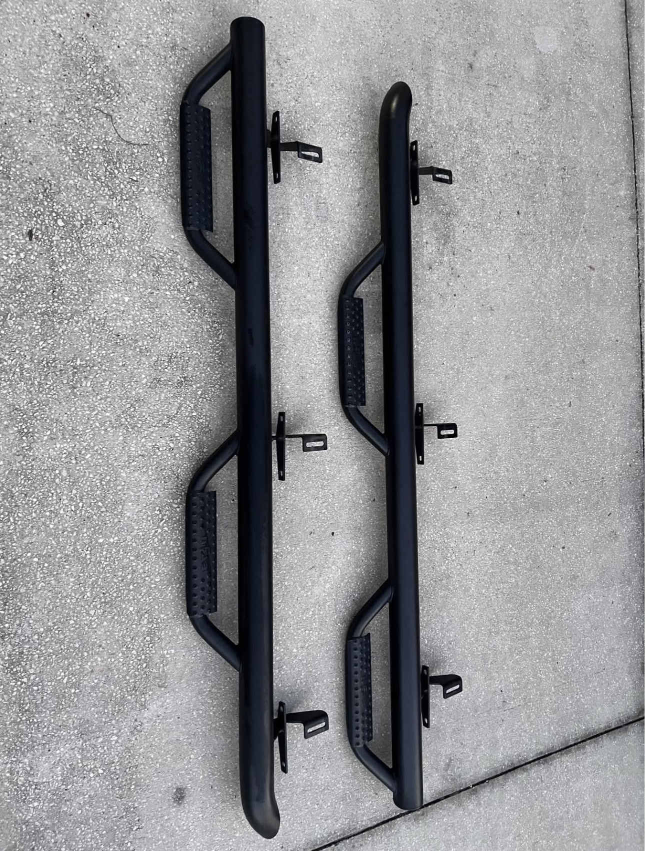 Green/blue trail user. These handle occasional rock contact. Step function useful for gear access. Finish shows scratches but steel intact. Good for light to moderate use. Installation straightforward.