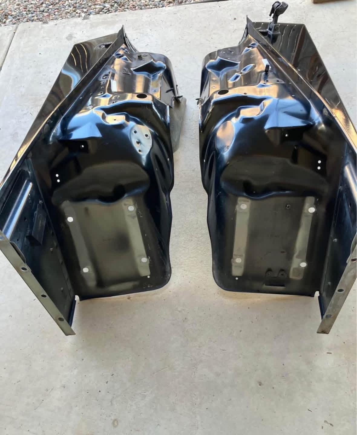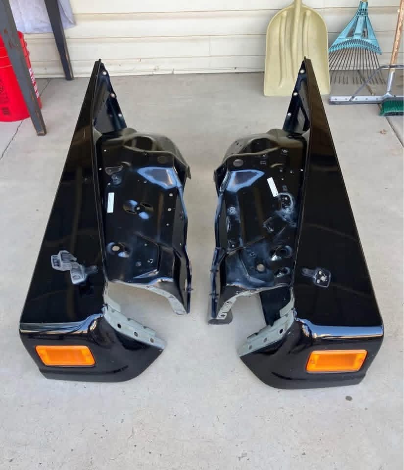 1997 TJ restoration needed both fenders. This pair saved buying separately. Black finish good, will paint match. Amber markers work. Steel construction matches OEM. All mounting points perfect. Essential restoration part.